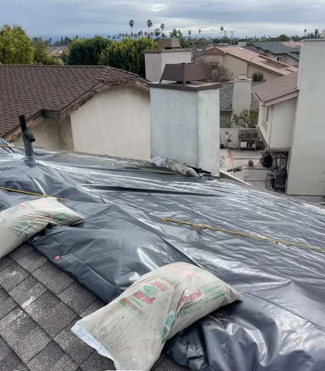 - Professional tarp installation and weatherproofing to stop further water intrusion