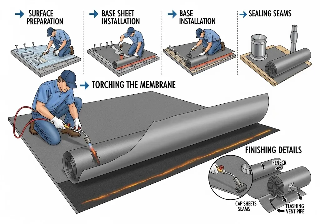 Learning how to do torch down roofing requires careful attention to safety protocols and proper technique. The installation process involves several critical steps that must be completed in sequence to ensure optimal performance and longevity.